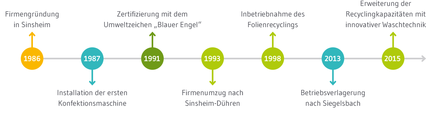 PAKUFOL wurde 1986 gegründet. Und genauso lange sind wir Vorreiter in Sachen nachhaltige Folienproduktion. Unser gesamtes Sortiment fertigen wir konsequent nach dem Kreislaufprinzip. Das heißt, wir nehmen Altkunststoffe an, sortieren und recyceln sie und stellen dann daraus neue hochwertige Produkte – in erster Linie Foliensäcke aller Art – her. Oder anders gesagt: Was sich andere kunststoffverarbeitende Betriebe als neue Entwicklung und Anpassung an den Zeitgeist auf die Fahne schreiben, ist bei uns schon immer gelebte Unternehmensphilosophie. Und das nachweislich. Unsere Produkte sind seit über 30 Jahren durchgängig mit dem Blauen Engel ausgezeichnet.